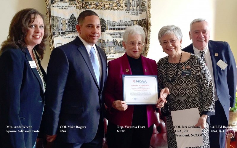 * The North Carolina Council of Chapters team consisted of COL Jeri Graham, USA, Ret., NCCOC President, COL Ed Baisden, USA, Ret., NCCOC Treasurer, COL Mike Rogers, USA, and Mrs. Andi Wrenn, MOAA Currently Serving Spouse Advisory Committee.